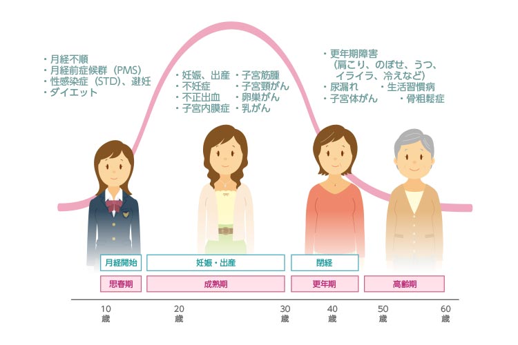 女性の身体は思春期から妊娠・出産、更年期、老年期までホルモンの変動に伴って大きく変化を迎えます。